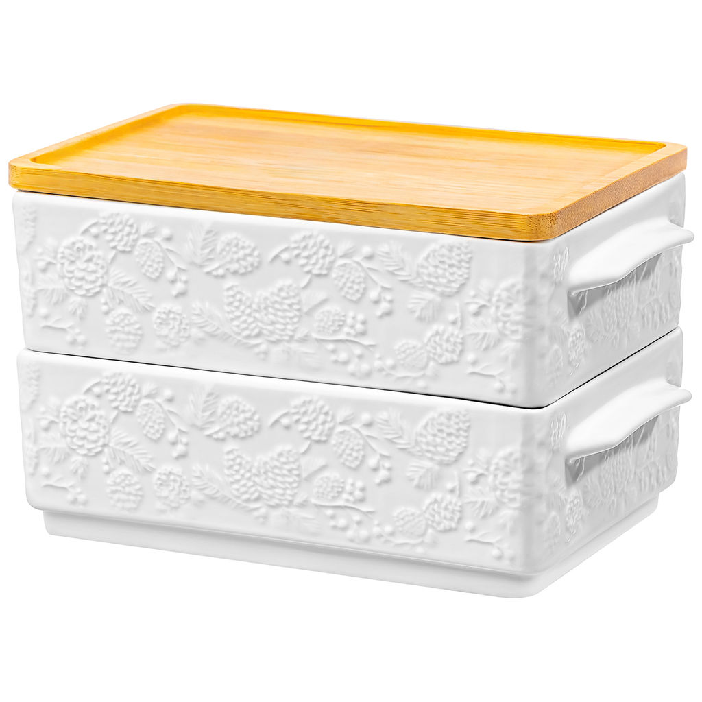 • Набор 2 блюд д/холодца 1,6 л 20.5*12*12 см "Шишки" + бамбуковая крышка