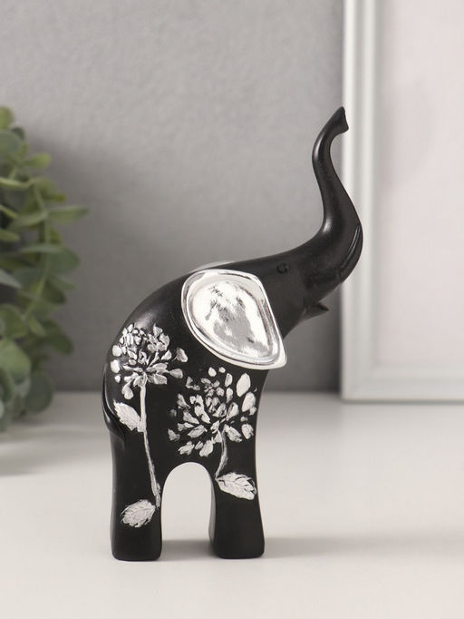Фигурка «Чёрный слон с ушками хобот вверх», полистоун, серебряный цветок, 9×4.5×15.5 см