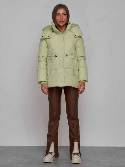 • Зимняя женская куртка модная с капюшоном салатового цвета 52302Sl