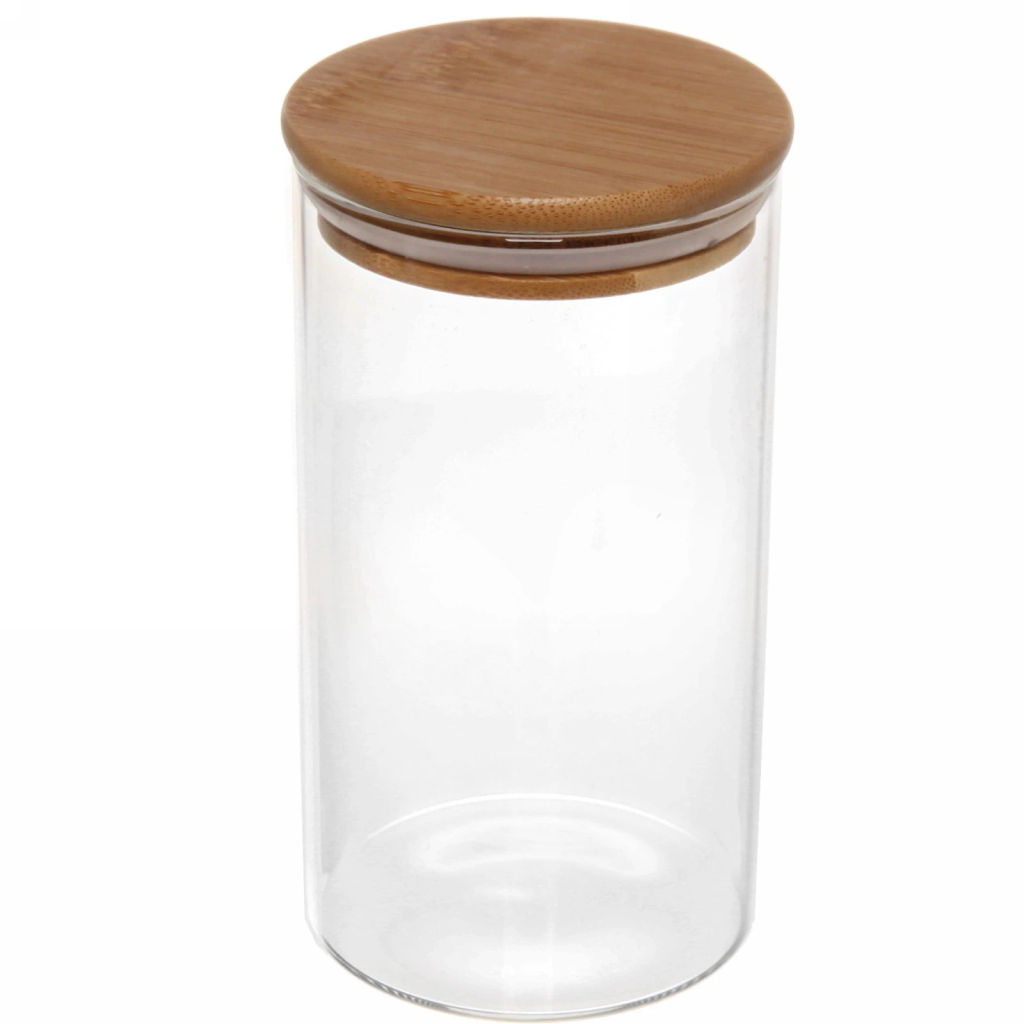 Цена за 2 шт. Банка для продуктов стеклянная 700мл "Хай-Тек" с бамбуковой крышкой 8,5*15см