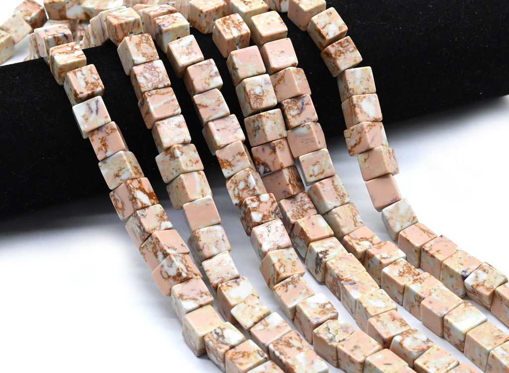 • Бусины из варисцита кубик 9-10мм, цв. персиковый, 38см, 38 бусин Радуга камня