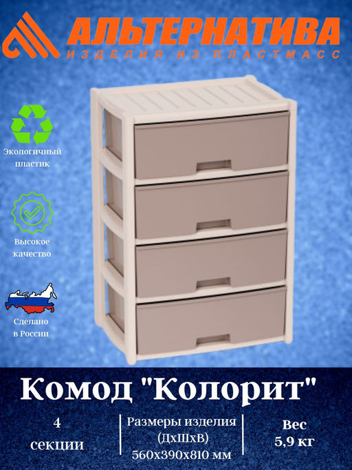 Комод 4-х секцион. широкий "Колорит" (бежевый)