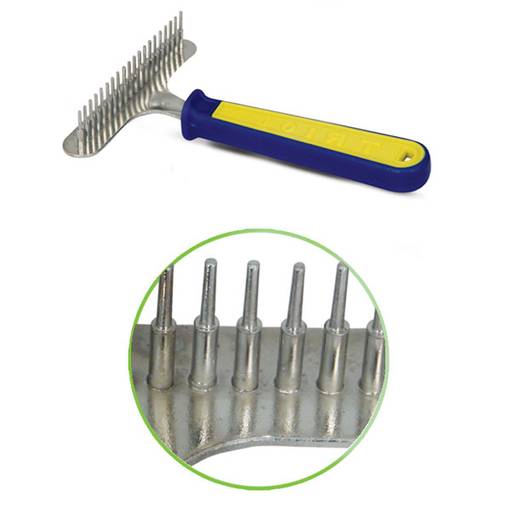 Расческа-грабли серии "Спорт" с удобной пластиковой ручкой и 20 металлическими зубцами. Изделие предназначено для мягкого расчёсывания шерсти пушистого питомца. Проволочные зубчики позволяют проводить расчёсывание аккуратно, без раздражения кожного покрова животного, доставляя ему большое удовольствие. Размер 155х110х35мм. Упаковка: пакет с клапаном.