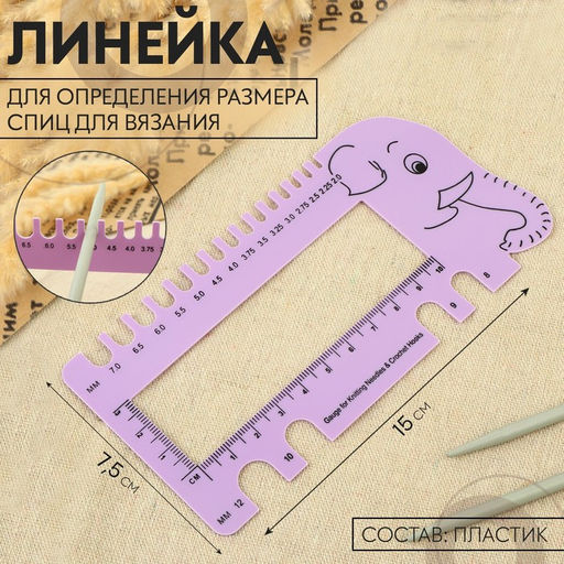 • Линейка для определения размера спиц для вязания «Слоник», 15×7.5 см