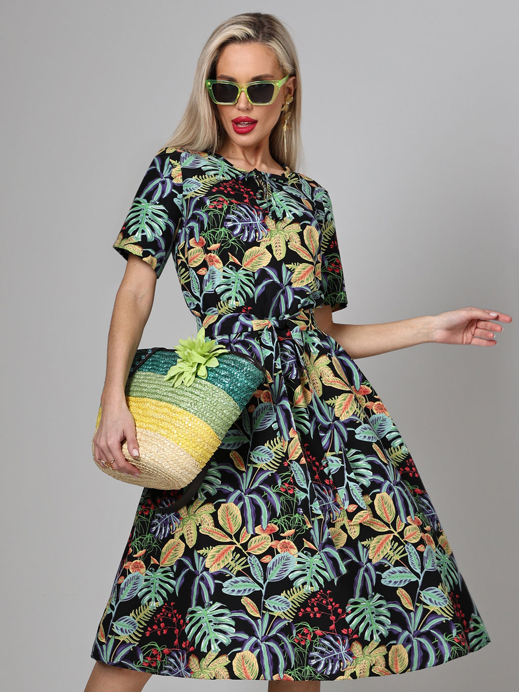 Легкое платье с цветочным принтом создаст яркий и запоминающийся образ. Платье предназначено для повседневной носки и подходит для создания комфортных образов в теплую погоду.Цветочный принт на ткани добавляет образу яркости и свежести, что делает платье актуальным для летнего сезона. Модель имеет короткие рукава, обеспечивающие удобство и свободу движений в жаркую погоду. Платье дополнено декоративным поясом, который подчеркивает талию и добавляет образу женственности. Застежка на платье отсутствует, что делает его простым в использовании и подчеркивает минималистичный дизайн. Ткань платья требует бережного ухода: рекомендуется стирка при температуре 30 градусов, что позволяет сохранить яркость цветов и структуру материала. Платье подходит для различных типов фигур благодаря свободному крою и регулируемому поясу.