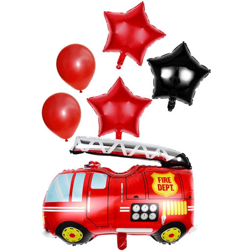 Воздушные шары  6 шт, "Пожарная машина" (74см - Машина, 45см,12"/24см)­