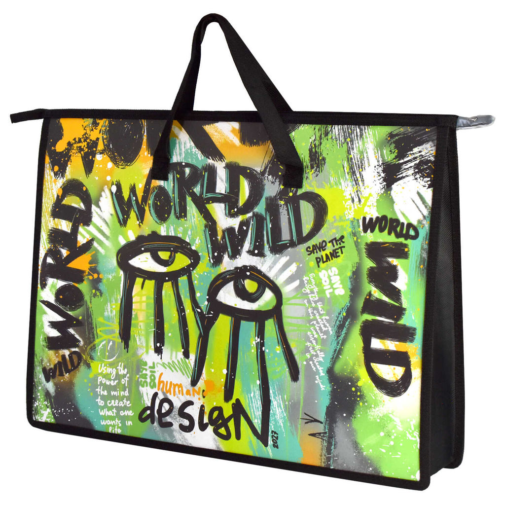 Папка для чертежей и рисунков пластиковая арт. 62514/ 12 НАСТЕННАЯ ЖИВОПИСЬ (полипропилен, формат А3, 45x33х9 см, 1 отделение (-я), молния, внутренний ПВХ карман, дно с расширением, текстильные ручки, УФ-печать)