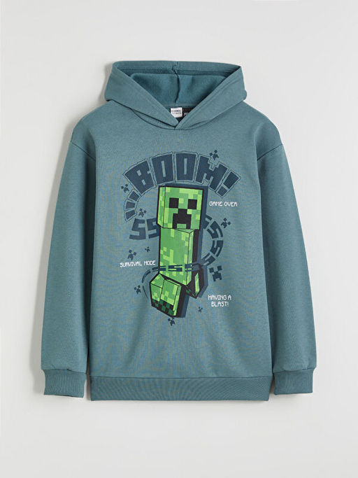 Kap??onlu Minecraft Bask?l? Erkek ?ocuk Kal?n Sweatshirt