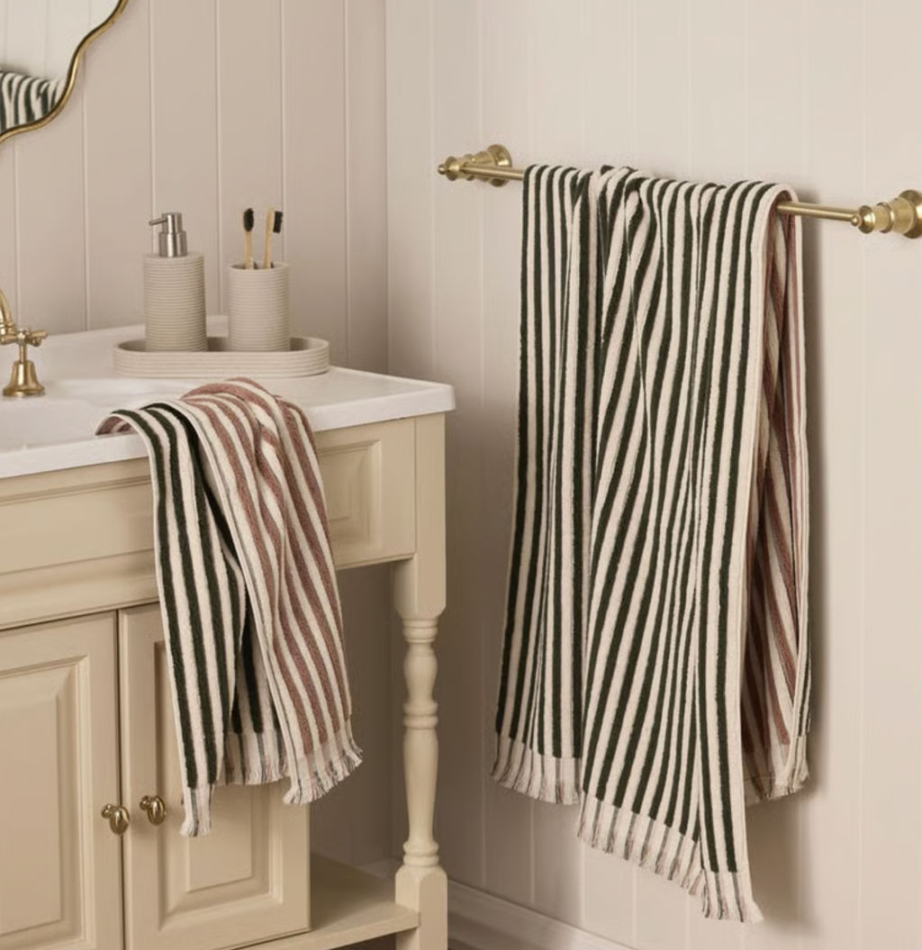 Полотенца Sophia, изготовленные в Турции, отличаются исключительной мягкостью и впитываемостью, а также двусторонним полосатым дизайном. Благодаря легкому выбору из двух модных цветов, изменить интерьер ванной комнаты стало проще простого. Сочетайте их с нашими основными и модными ковриками для ванной, чтобы завершить образ.