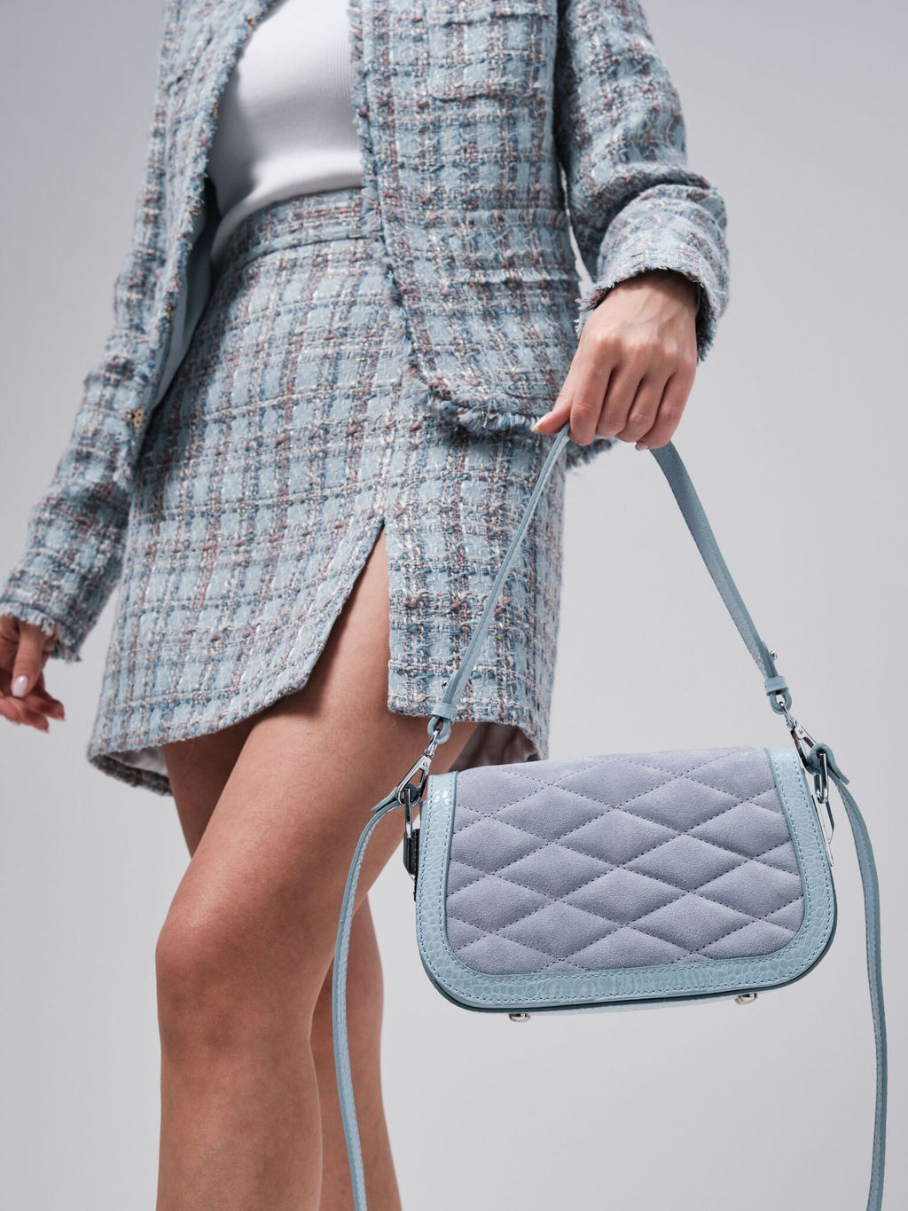 Стильная женская сумка из натуральной кожи через плечо Deboro 30791 в нежном голубом оттенке Голубая вода это идеальный аксессуар для тех, кто ценит элегантность и удобство. Детали: натуральная кожа, натуральная замша, 1 удобный несъемный длинный регулируемый ремень, 1 съемный короткий ремень, клапан на магнитах, 1 внутренние отделение на хлопковой водонепроницаемой подкладке, 1 внутренний карман на молнии. Благодаря своей форме и длинному удобному регулируемому эту сумку кросс-боди можно носить через плечо, освобождая руки, оставаясь мобильной и активной. Эта модель выполнена из натуральной кожи и замши, что обеспечивает ей долговечность и роскошный вид. Когда хочется внести разнообразие в повседневный образ, замшевая поверхность прекрасно оттеняет общий стиль. Женская сумка Deboro 30791 - это особый шарм и уютная текстура. С ней легко создать стильный лук на каждый день или вечернее мероприятие. В комплекте два ремня, короткий на плечо и длинный кросс боди. Удобные крепления позволяют регулировать длину ремешка, подстраиваясь под ваш рост и предпочтения в моде. -- Характеристики -- Цвет: голубой Материал: Натуральная кожа;Замша натуральная Бренд: Deboro Тип: Сумка на плечо Страна-изготовитель: Россия Высота, см: 16 Ширина, см: 24 Глубина, см: 6 Материал подкладки: Хлопок Количество внутренних отделений: 1 Тип застежки: Магниты Формат А4: не вмещает Высота ручек, см: 20 Длина плечевого ремня, см: 118 Вес товара, г: 580 Ручки: Плечевой ремень;На плечо;На запястье;На локоть Пол: женская коллекция Группа товара: Сумки