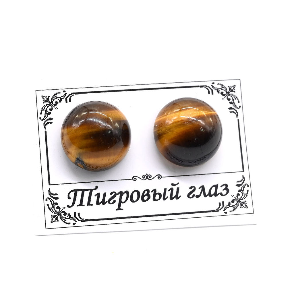 Серьги гвоздики (пусеты) из тигрового глаза 10мм. Радуга камня