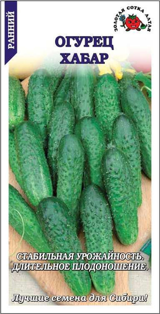 Хабар ранний сорт универсального назначения с крупнобугорчатыми зеленцами длиной 1011 см. Сочные, нежные, хрустящие с отличным вкусом и без горечи. Отличается длительным периодом плодоношения и стабильной урожайностью. Характеристики сорта * Тип цветения: пчелоопыляемый * Срок созревания: ранний * Назначение: универсальное * Длина плода: 1011 см * Поверхность: крупнобугорчатая * Окраска: зелёная со светлыми полосами средней длины * Особенности: сочные, нежные, хрустящие, отличного вкуса, без горечи * Тип роста: плетистое, индетерминантное, среднерослое * Место выращивания: открытый грунт * Особенности: длительный период плодоношения, стабильная урожайность * Особенности: высокие вкусовые качества свежей, соленой, маринованной и малосольной продукции Рекомендации по выращиванию Общие агрономические рекомендации. Уточняйте сроки и схемы под ваш регион. * Требует присутствия пчёл. * Обязательна подвязка на шпалеру. * Подходит для традиционного огородничества. Информация о семенах * Производитель: Золотая сотка Алтая * Фасовка: 0,5 г Почему стоит выбрать этот сорт? Хабар это урожай без перерыва! Сорт с длительным плодоношением и отменным вкусом для тех, кто хочет собирать огурцы всё лето.
