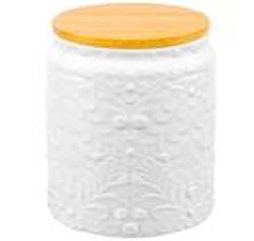 • Банка д/хранения 750 мл 10*10*14,6 см с бамбуковой крышкой с сил. упл. белый матовый
