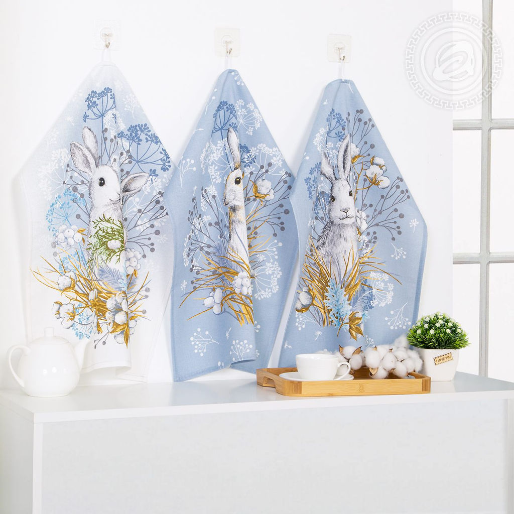 Полотенца из рогожки Роджер в нежной цветовой палитре дополнены очаровательным и милым дизайном с самыми пушистыми и обаятельными зайчишками на фоне хлопка и одуванчиков. Рисунок выглядит воздушно, изящно, атмосферно.