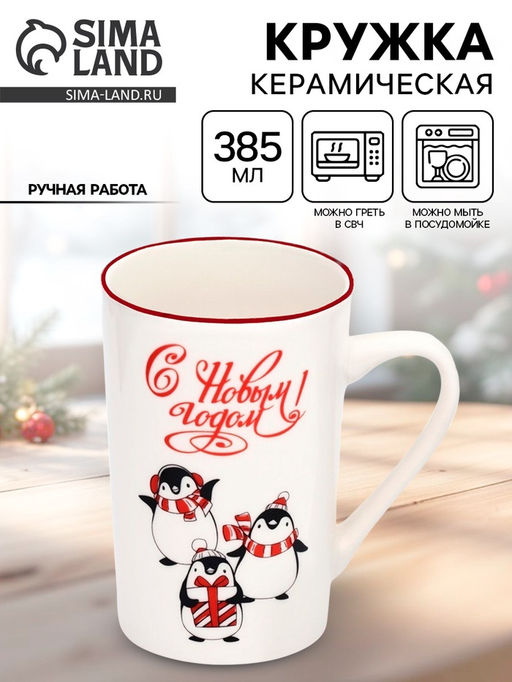 Кружка керамическая новогодняя «С Новым годом!», 385 мл, ручная работа