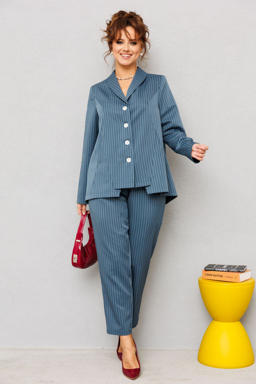Костюм женский, состоящий из жакета и брюк, выполнен из костюмной ткани в полоску (чуть тянется).