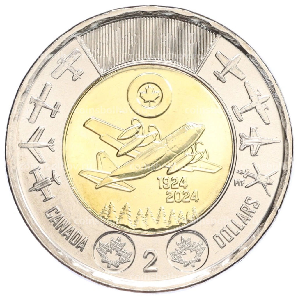 Монета 2 доллара 2024 года Канада 100 лет Королевским военно-воздушным силам Канады