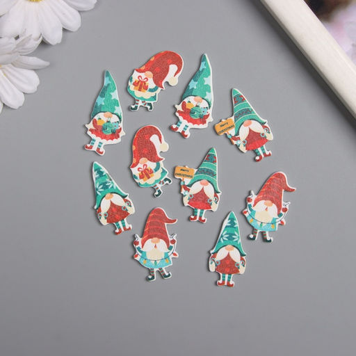 Декор для творчества дерево "Новогодние гномы" набор 10 шт 3,6х2,3 см