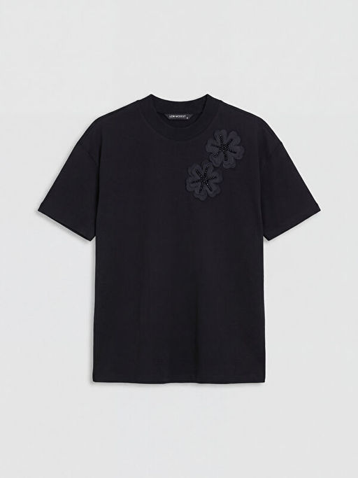 Bisiklet Yaka ?i?ek ??lemeli Bluz