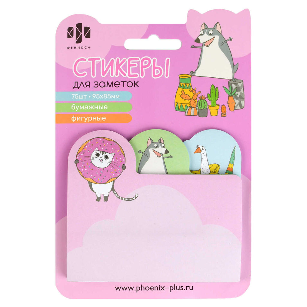 Стикеры для заметок бумажные, 95x85 мм, 75 шт., арт. 66580 / 25 ЗВЕРЮШКИ (материал: бумага 80 г/м?, кол-во цветов: 3, кол-во каждого цвета: 25, форма: фигурная, декор: полноцветная печать; наличие диспенсера: нет, индивидуальная упаковка: подложка с европодвесом из мелованного картона + ПЭТ-пакет)