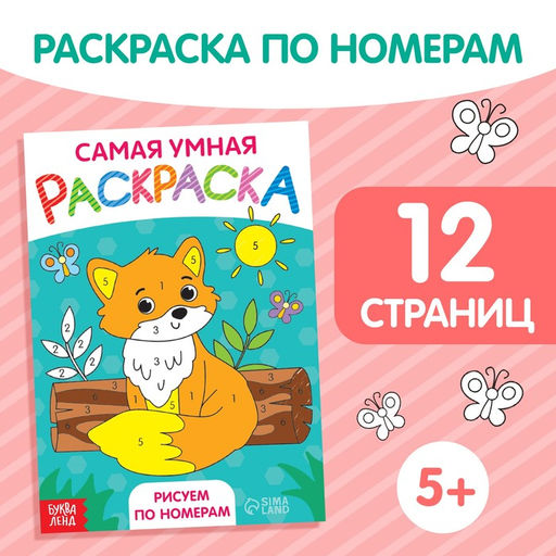 • Цена за 2 шт. Раскраска «Рисуем по номерам», формат А5, 12 стр., 5+