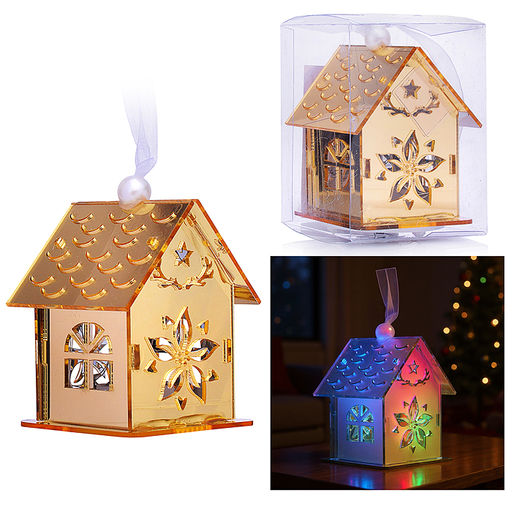 Новогоднее украшение "Домик" со светом, золото