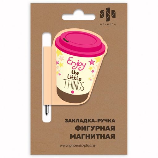 Закладка-ручка магнитная для книг арт. 50012 / 150 СТАКАНЧИК КОФЕ ( размер 60x60 мм, мелованная бумага, ферроагломерированный полимер, полноцветный дизайн, фигурная вырубка, глянцевая ламинация, стержень для записей, ПЭТ-пакет с европодвесом)