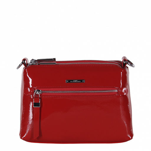 Сумка кросс-боди, выполнена из натуральной лаковой кожи. Декорирована логотипом на передней части. Дополнена  серебристой фурнитурой. Данная модель закрывается на молнии. Каркас полужесткий. Носится на плече. В комплекте имеется съёмный плечевой ремень с регулировкой длины. Или в руке за съемную ручки.