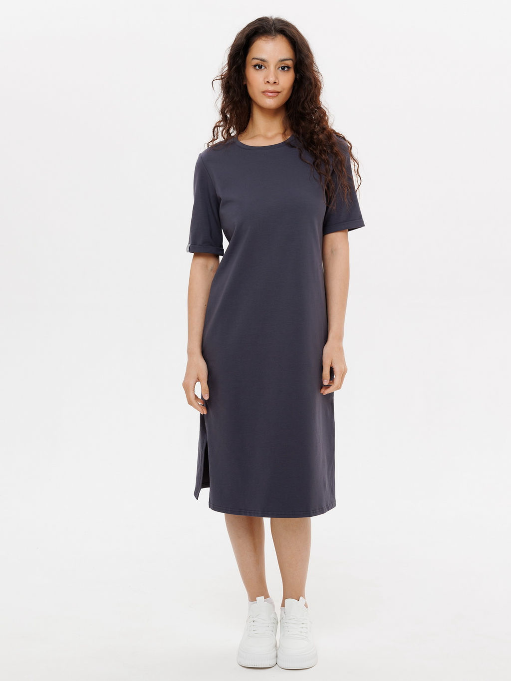 • Трикотажное женское удлиненное платье-футболка графит ВП-08 (33)