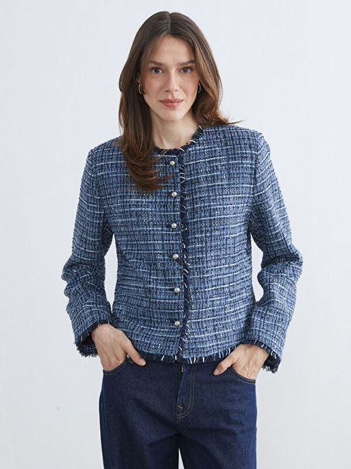 Bisiklet Yaka Ekose Kad?n T?vit Ceket
