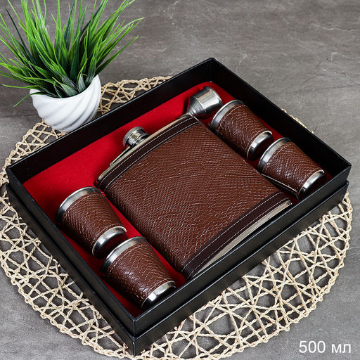 Набор в подарочной коробке Фляжка 500 мл + 4 стопки, воронка / FL-143 /уп 40/