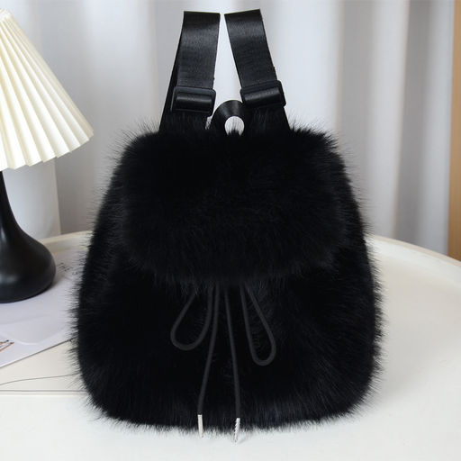 Рюкзак из мягкого пушистого материала ( искусственный мех)  с клапаном и шнуровкой на завязках.