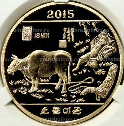 Монета 5 вон 2015 года Северная Корея Национальный музей Кореи в Сеуле Народная живопись (В слабе Центрального банка КНДР)