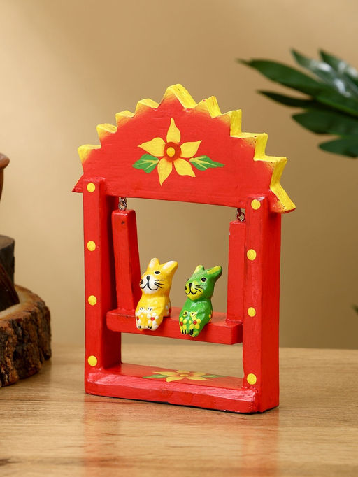 • Сувенир Зайки на качелях, 10?3.5?15 см, дерево, красный