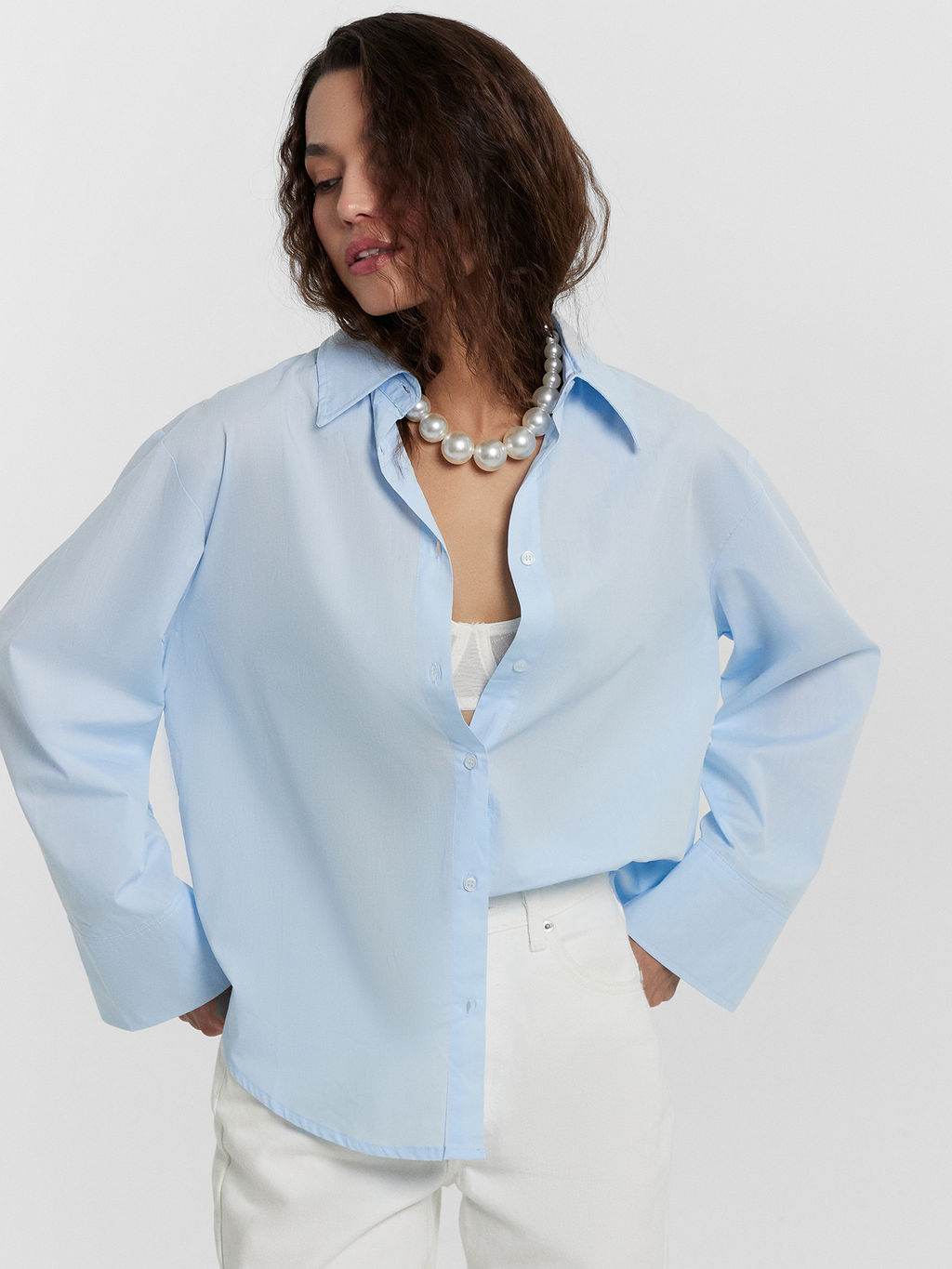 Познакомьтесь с универсальной однотонной рубашкой Mark Formelle идеальным дополнением вашего базового гардероба! Модель свободного кроя сочетает в себе элегантность и комфорт, делая её подходящим выбором для множества повседневных и деловых образов. Застежка на пуговицах и отложной классический воротник придают рубашке стильный и аккуратный вид, а длинные широкие рукава с манжетами на пуговицах добавляют изысканности. Закругленный нижний край подчеркивает универсальность модели и создает мягкий, плавный силуэт. Для ее выполнения использовали натуральный хлопок, гарантирующий воздухопроницаемость, долговечность и комфорт на протяжении всего дня. Эта модель станет надежной основой вашего гардероба, отлично сочетающейся с брюками, юбками и джинсами для создания стильных и гармоничных комплектов. Рекомендуем!­