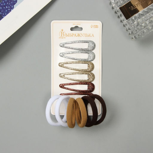 • Цена за 2 шт. Набор для волос Выбражулька «Гелена», 6 резинок 3.5 см, 6 заколок 5 см