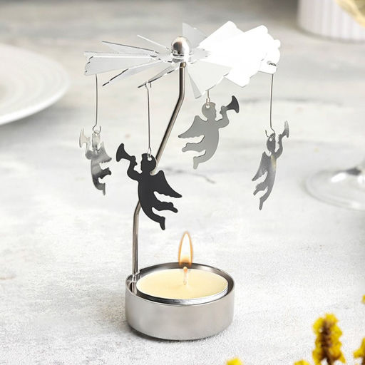 • Подсвечник на 1 свечу «Карусель вращающаяся с ангелами», серебряная, металл