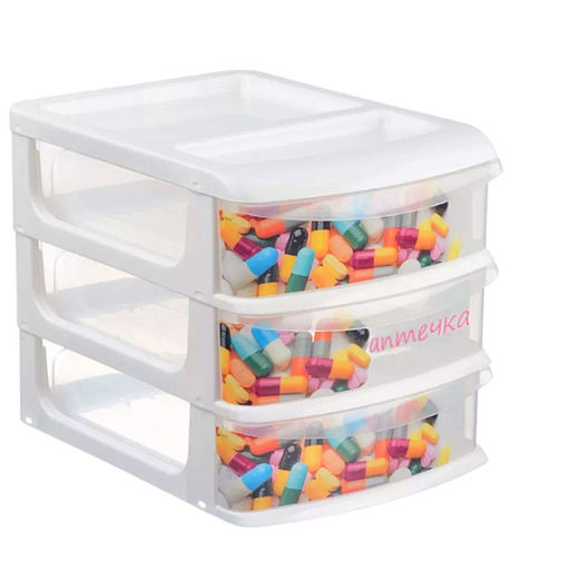 Пластиковый бокс-органайзер с выдвижными ящиками. Предназначен для хранения лекарств и медицинских изделий.