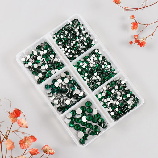 Декор для творчества стекло «Стразы. Тёмно-зелёный», d=2-4.8 мм, набор 1188 шт., 6×8×1.5 см