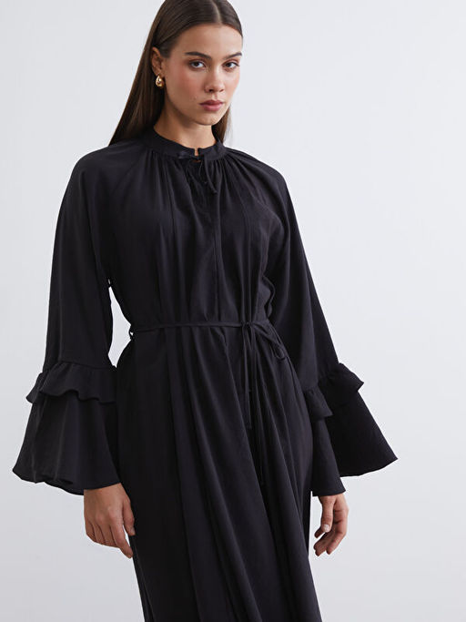 Ba?lamal? Yaka F?rf?rl? B?zg?l? Elbise