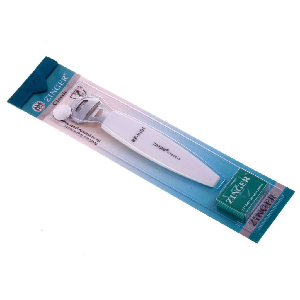 • Zinger Тёрка для педикюра с бритвой / Classic SIS-28, лезвия в комлекте, белый, 14,5 см