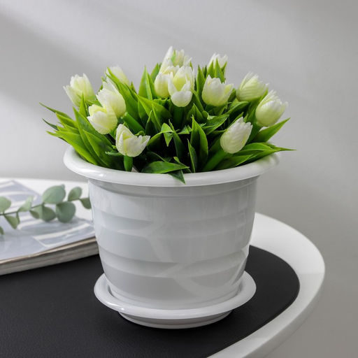 Любой, даже самый современный и продуманный интерьер будет не завершённым без растений. Они не только очищают воздух и насыщают его кислородом, но и заметно украшают окружающее пространство. Такому полезному «члену семьи» просто необходимо красивое и функциональное кашпо, оригинальный горшок или необычная ваза! Мы предлагаем -горшок для цветов!Оптимальный выбор материала — пластмасса! Почему мы так считаем? Малый вес. С лёгкостью переносите горшки и кашпо с места на место, ставьте их на столики или полки, подвешивайте под потолок, не беспокоясь о нагрузке. Простота ухода. Пластиковые изделия не нуждаются в специальных условиях хранения. Их легко чистить — достаточно просто сполоснуть тёплой водой. Никаких царапин. Пластиковые кашпо не царапают и не загрязняют поверхности, на которых стоят. Пластик дольше хранит влагу, а значит — растение реже нуждается в поливе. Пластмасса не пропускает воздух — корневой системе растения не грозят резкие перепады температур. Огромный выбор форм, декора и расцветок — вы без труда подберёте что-то, что идеально впишется в уже существующий интерьер.Соблюдая нехитрые правила ухода, вы можете заметно продлить срок службы горшков, вазонов и кашпо из пластика: всегда учитывайте размер кроны и корневой системы растения (при разрастании большое растение способно повредить маленький горшок); берегите изделие от воздействия прямых солнечных лучей, чтобы кашпо и горшки не выцветали; держите кашпо и горшки из пластика подальше от нагревающихся поверхностей.Создавайте прекрасные цветочные композиции, выращивайте рассаду или необычные растения, а низкие цены позволят вам не ограничивать себя в выборе. Форма: Круглая. Диаметр, см: 15.5. Высота, см: 12.3. Объём, л: 1. Вид установки: Настольное. Рисунок: Нет. С поддоном: Да. Можно оставлять зимой на улице: Нет. Размеры товара: 13/15.5/13.