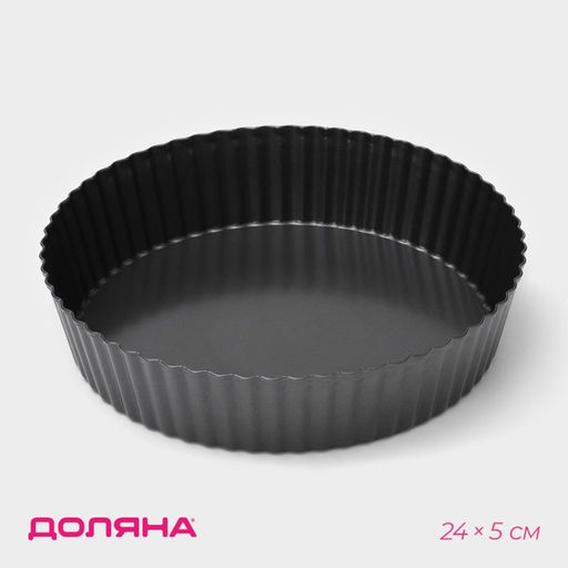 Форма для выпечки Доляна «Жаклин. Рифлёный круг», 24×5 см, разъёмная, антипригарное покрытие, чёрная