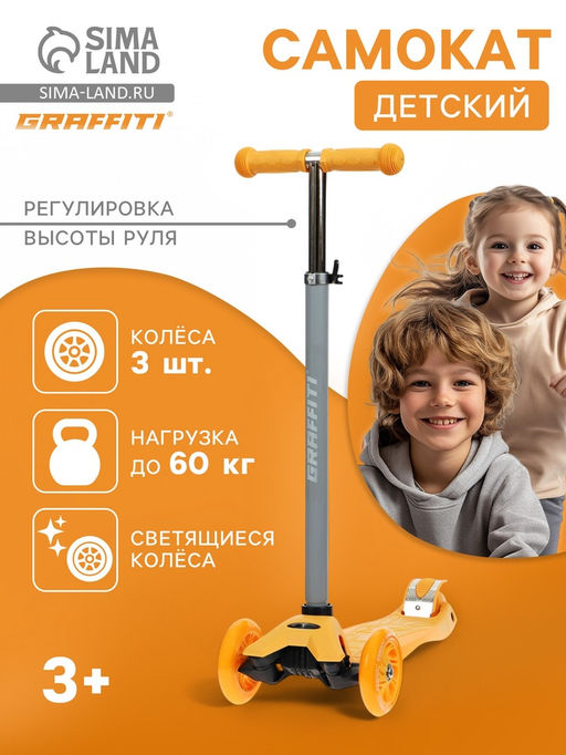 Самокат GRAFFITI Baby, колёса световые PU 120/70 мм, ABEC 7, цвет оранжевый