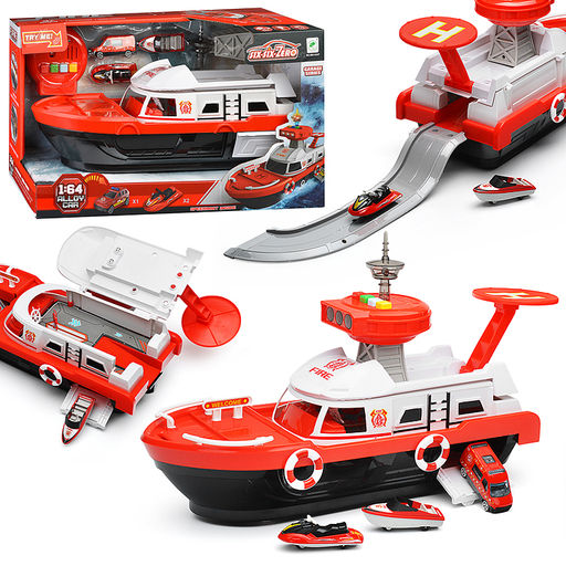 Комплектация набора: катер, дорога-трек, вышка, оборудование для катера, водный транспорт-2 шт., машинка-1 шт., наклейки.