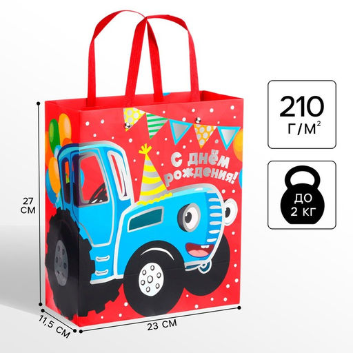 • Пакет подарочный ламинированный с тиснением «С днём Рождения!», Синий трактор, 23х27х11,5