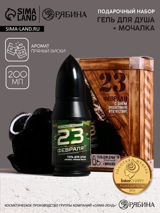 • Подарочный набор 23 февраля, гель для душа и мочалка для тела, аромат пряный виски, 200 мл, Чистое счастье