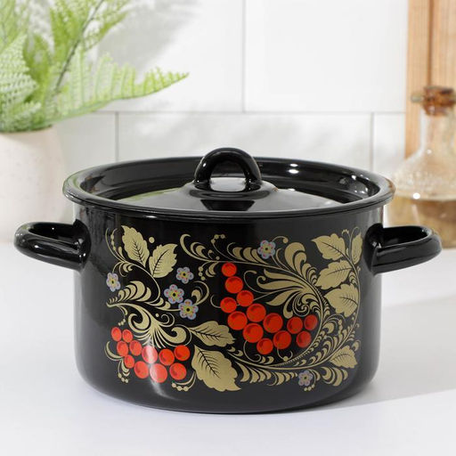 • Кастрюля эмалированная «Рябина», 2.9 л, d=20 см, с крышкой, и, деколь, МИКС, ручка МИКС
