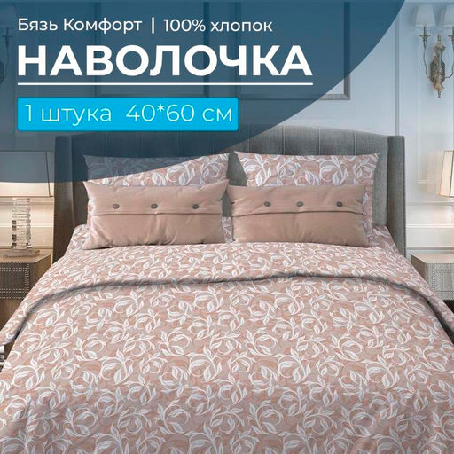 Артикул: Наволочка 40*60 см, бязь "Комфорт" (Вьюнок, бежевый)