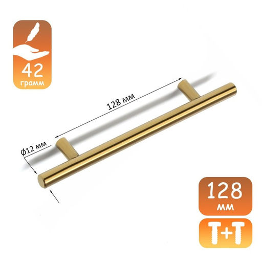 Цена за 2 шт. Ручка-рейлинг CAPPIO FRIDA, нержавеющая сталь, d=12 мм, м/о 128 мм, цвет золото